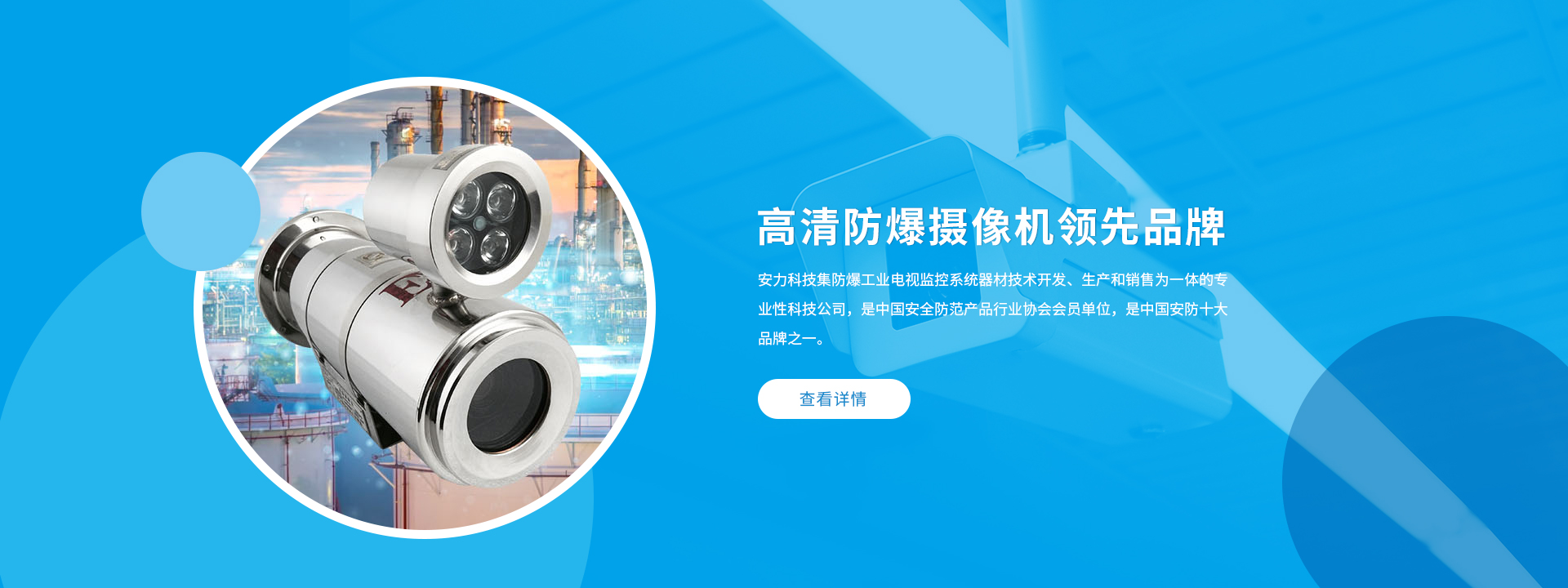 杭州安力科技有限公司是一家集防爆工业电视监控系统器材技术开发、生产和销售为一体的专业性科技公司,是中国安全防范产品行业协会会员单位。公司在行业内率先导入ISO9001:2015质量管理体系和ISO14001:2015环境管理体系认证,通过全国工业生产许可证认证,是中国安防十大品牌之一。公司坐落于杭州市余杭中泰工业园区,在防爆工业电视监控方面有十多年的丰富经验,在国内工业电视行业享有较高知名度。安力科技拥有齐备的科研.生产设备,所有产品均由我公司自行研发,自行设计,自行生产。是高清防爆摄像机领先品牌。